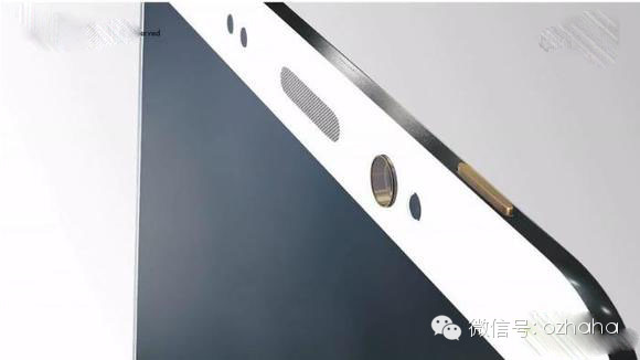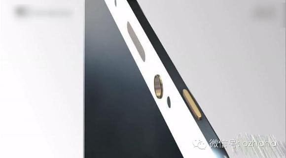 2. 同时我们看到Ho me键部位继承了iPhone5s的指纹识别技术,具备指纹扫描功能,同时Nano Sim卡的位置被移到了机身左侧的下方。