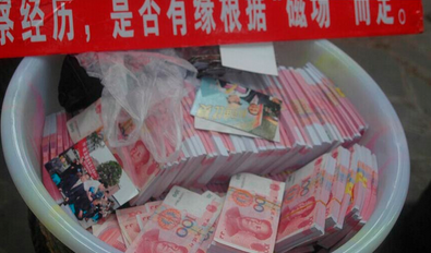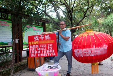 在广汉市房湖公园内,一位戴着眼镜的男子打着一个大大的红色灯笼,盆里装满了一叠叠崭新的百元大钞找干妈。此事被网络曝光后,引发网友关注,多数网友怀疑是炒作。今天下午,四川新闻网记者联系到了当事人王江。王江表示,找干妈是源于10多年前算命先生要他找一个干妈,工作才会顺利。同时,他还向四川新闻网记者证实,他就是“莫向松事件”的幕后推手。